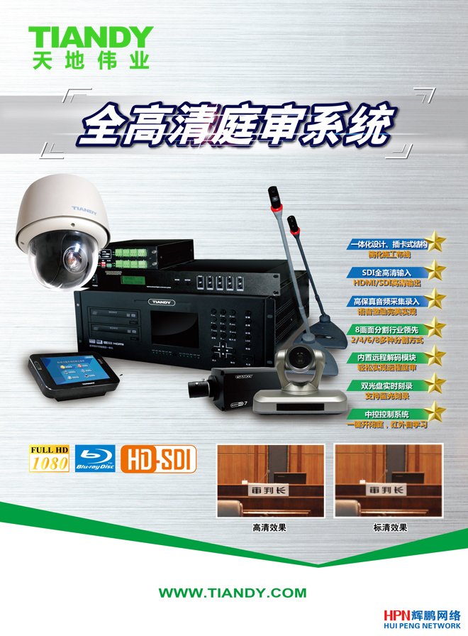 天津天地偉業(yè)數(shù)碼科技有限公司 “數(shù)字化庭審系統(tǒng)”通過加強計算機(jī)技術(shù)、圖像數(shù)字化技術(shù)和信息技術(shù)的應(yīng)用采用先進(jìn)的語音激勵畫面自動切換、專業(yè)的MPEG-4/H.264數(shù)字音視頻編碼并能夠?qū)崟rDVD光盤直錄、音像資料庫硬盤備份、網(wǎng)絡(luò)點播、動態(tài)片頭字幕疊加、嵌入式操作軟件、音視頻參數(shù)調(diào)整、“雙碼流”網(wǎng)絡(luò)傳輸直播技術(shù)。實現(xiàn)法院系統(tǒng)對審判的標(biāo)準(zhǔn)化建設(shè),利用現(xiàn)有的網(wǎng)絡(luò)對審判過程進(jìn)行有效的監(jiān)督和管理,貫徹科技法庭應(yīng)用理念,提高了審判過程的真實性、有效性和公平性,加強了法院在辦案、辦公管理的信息化程度。
