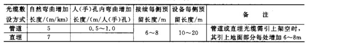 表  光纜敷設規(guī)定的預留長度