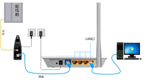 光纖入戶,光貓連接無線路由器的方法:用網(wǎng)線將路由器的WAN口與光貓的LAN口相連,當路由器的WAN口燈閃爍表示連接正常。