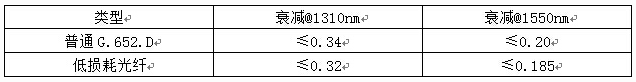 低損耗光纖不改變光纖的波導(dǎo)結(jié)構(gòu),完全兼容G.652.D標(biāo)準(zhǔn),其工藝主要是通過(guò)改善光纖內(nèi)部的應(yīng)力從而優(yōu)化瑞利散射來(lái)降低損耗,因此相比于普通G.652.D,具有更低的衰減性能,而且價(jià)格也與普通的G.652.D光纖相當(dāng)。具體衰減指標(biāo)如下表。